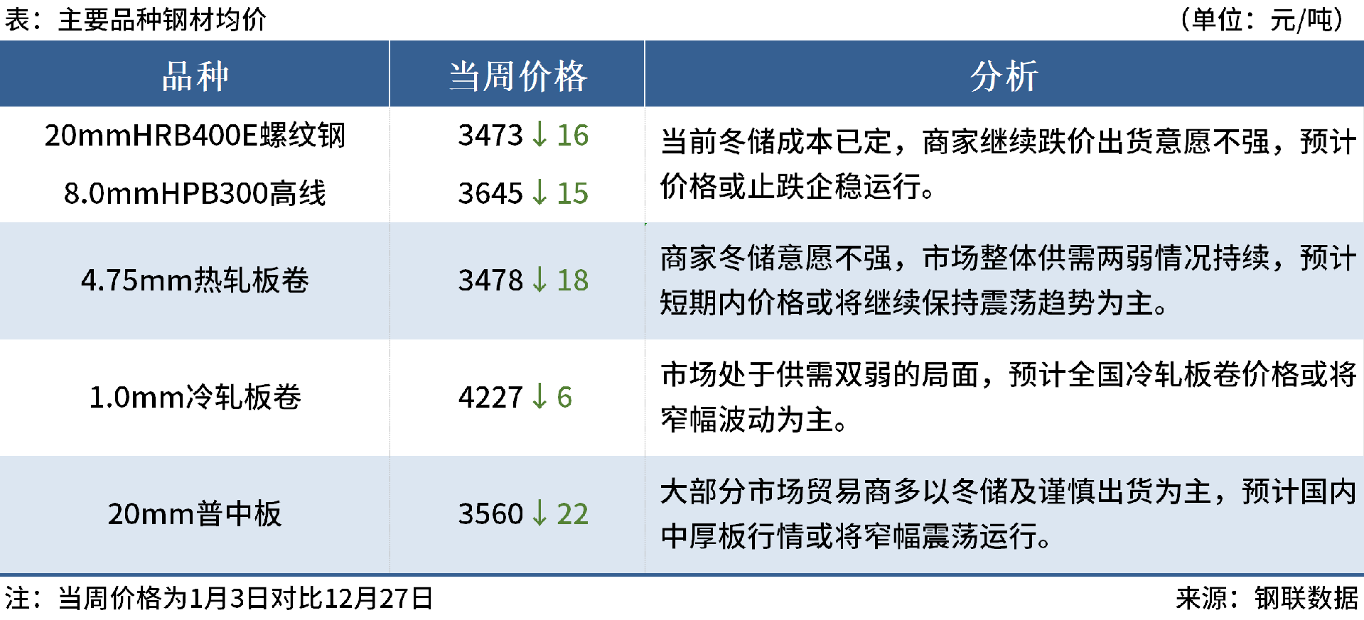 ◎1月3日,全國主港鐵礦石成交144.70萬噸,環(huán)比增13.5%;237家主流貿(mào)易商建筑鋼材成交9.34萬噸,環(huán)比減16.5%。