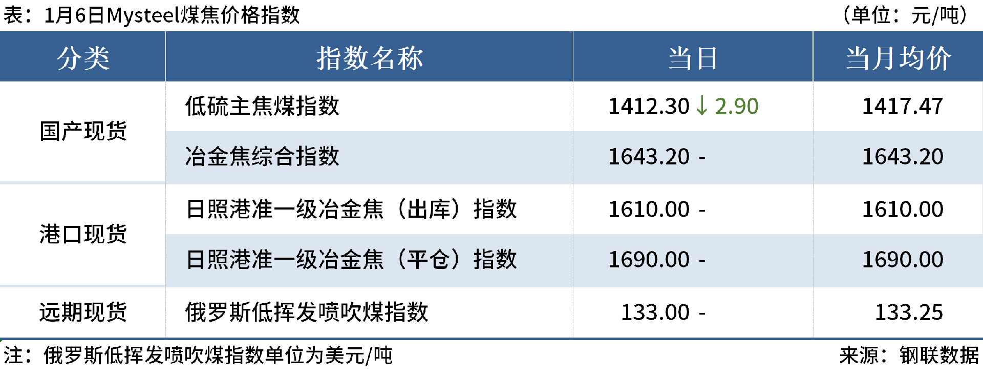 ◎1月6日,焦炭開啟第六輪提降。其中,邢臺(tái)、天津、唐山等部分鋼廠對(duì)濕熄焦炭下調(diào)50元/噸、干熄焦炭下調(diào)55元/噸,1月8日零點(diǎn)執(zhí)行。