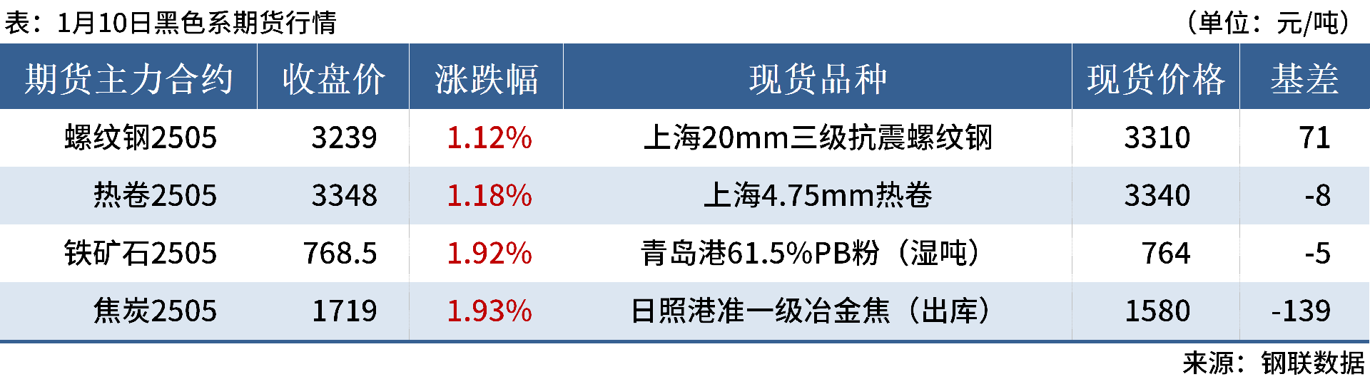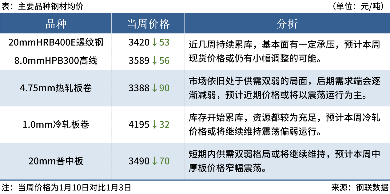 ◎ 1月10日,全國主港鐵礦石成交78.55萬噸,環(huán)比減13.4%;237家主流貿易商建筑鋼材成交7.75萬噸,環(huán)比減4.8%。