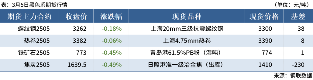 ◎3月5日,全國主港鐵礦石成交60.20萬噸,環(huán)比減34.8%;237家主流貿(mào)易商建筑鋼材成交9.04萬噸,環(huán)比減7%。