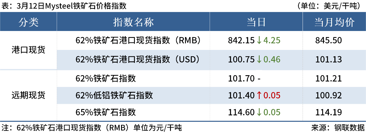 ◎3月12日,全國(guó)主港鐵礦石成交49.40萬(wàn)噸,環(huán)比減3.9%;237家主流貿(mào)易商建筑鋼材成交11.67萬(wàn)噸,環(huán)比增10.6%。