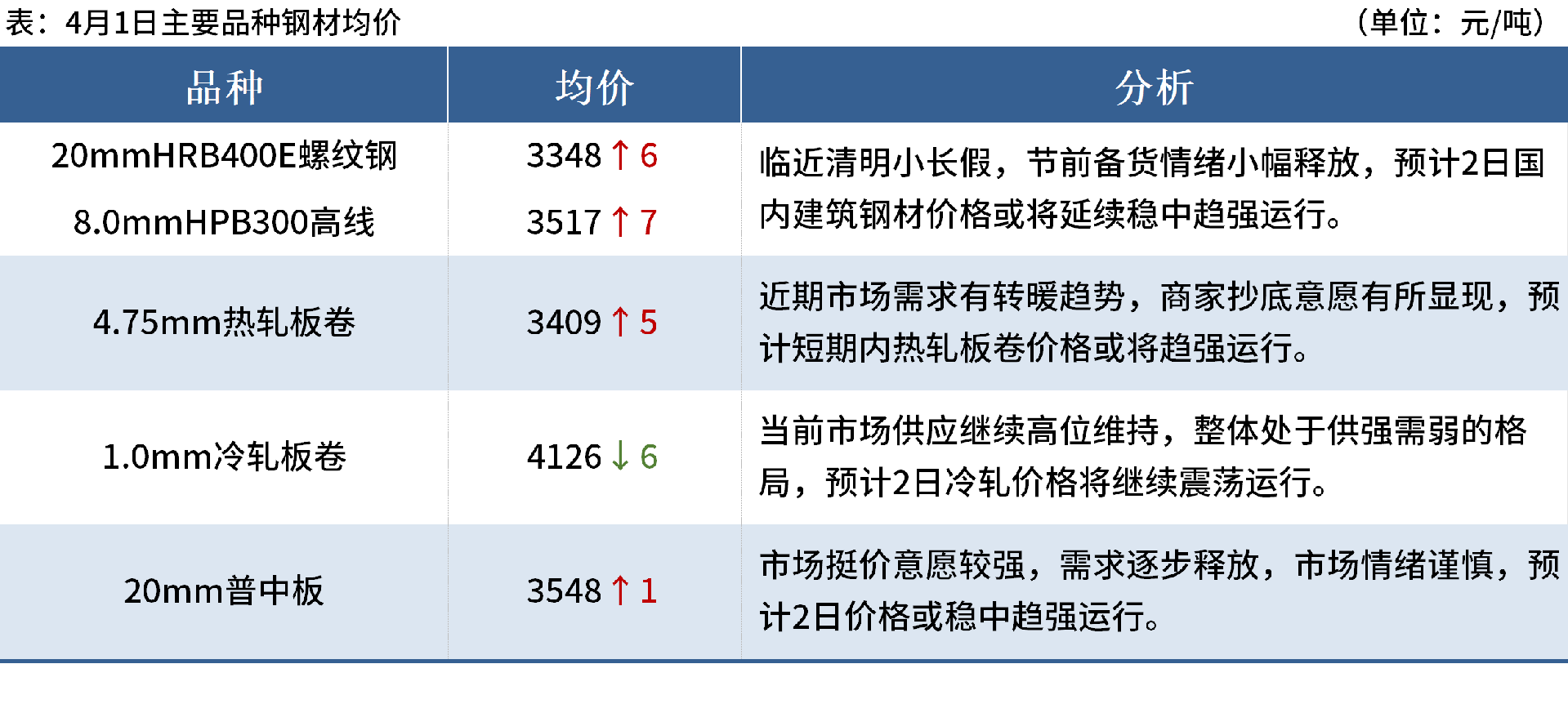 ◎4月1日,全國主港鐵礦石成交93.40萬噸,環(huán)比減5.7%;237家主流貿(mào)易商建筑鋼材成交15.32萬噸,環(huán)比增46.7%。