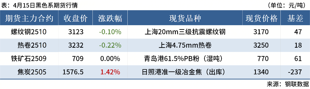 ◎4月15日,全國主港鐵礦石成交90.80萬噸,環(huán)比減6%;237家主流貿(mào)易商建筑鋼材成交11.07萬噸,環(huán)比減6.3%。