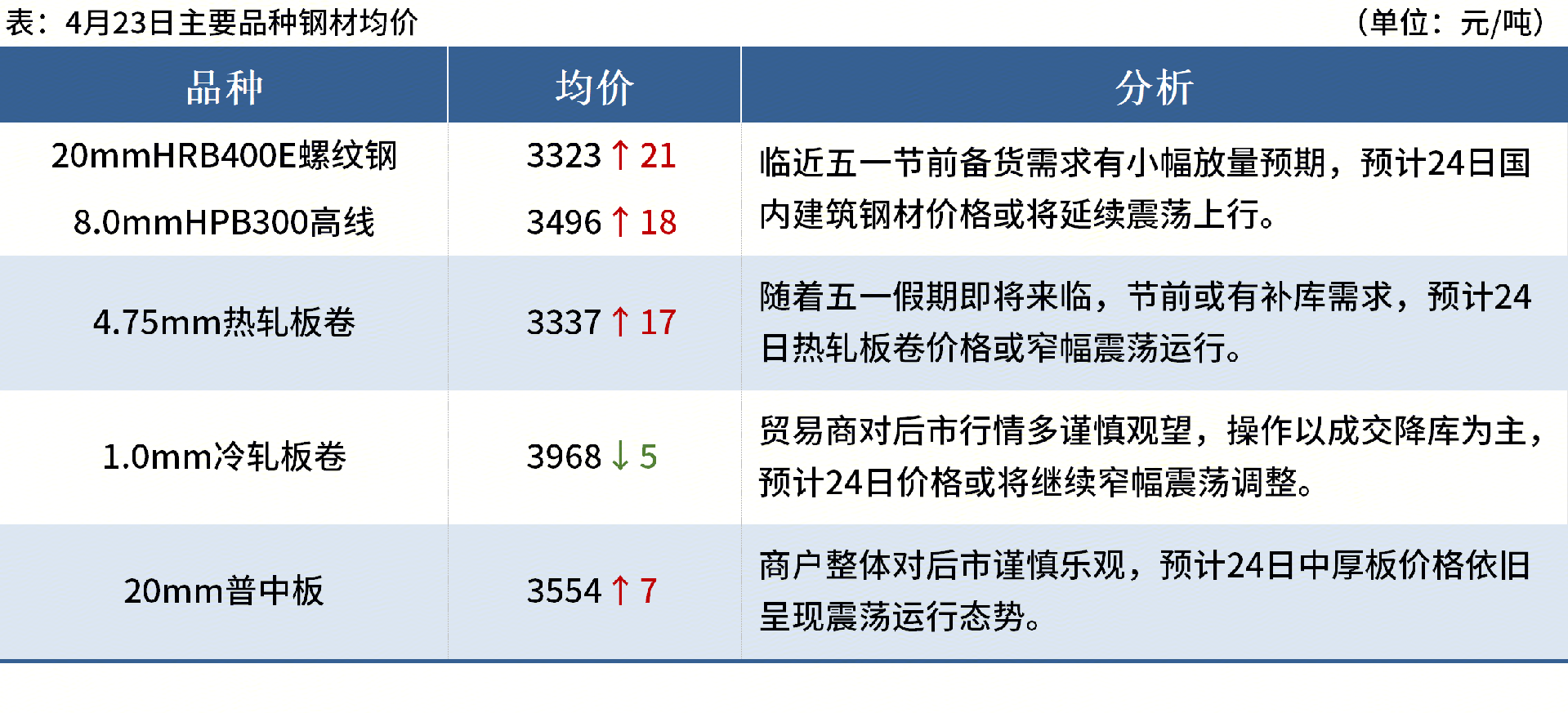 ◎萍安鋼鐵自4月23日至5月10日,因部分高爐檢修,各產線將進行交替檢修,預計影響建筑鋼材日均產量0.2萬噸。