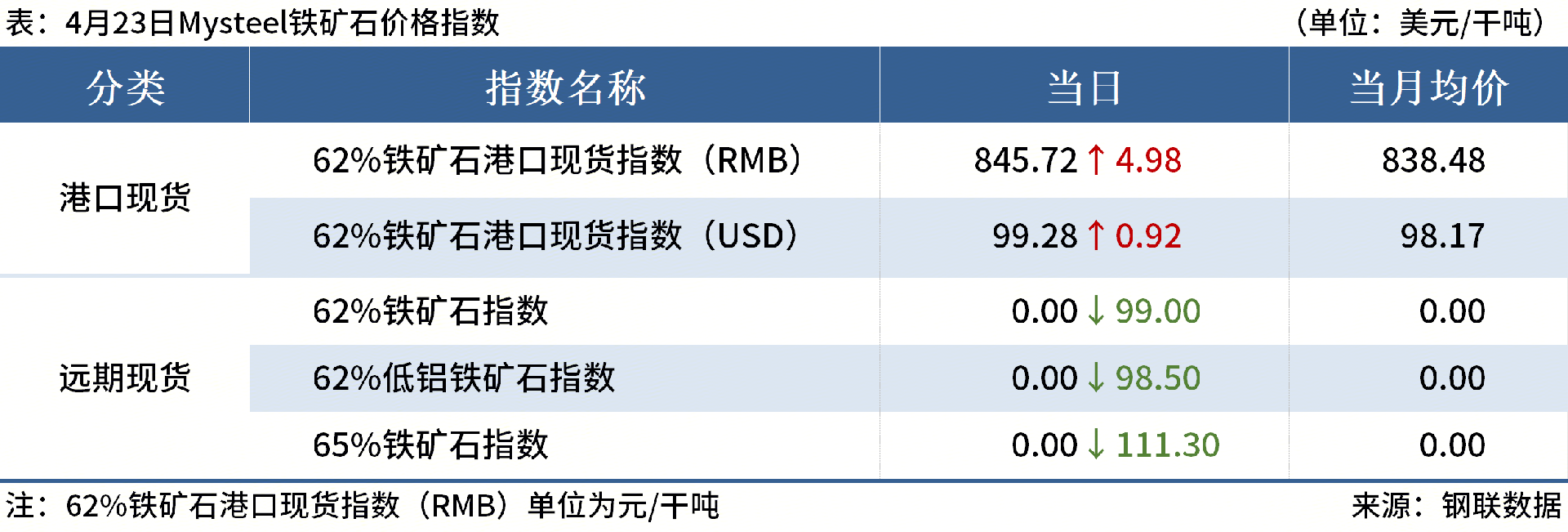 ◎4月23日,全國主港鐵礦石成交106.10萬噸,環(huán)比增0.8%;237家主流貿易商建筑鋼材成交14.10萬噸,環(huán)比增41.6%。