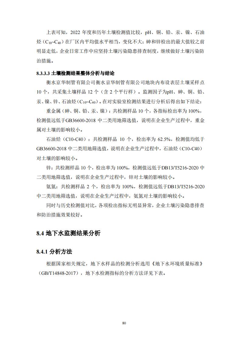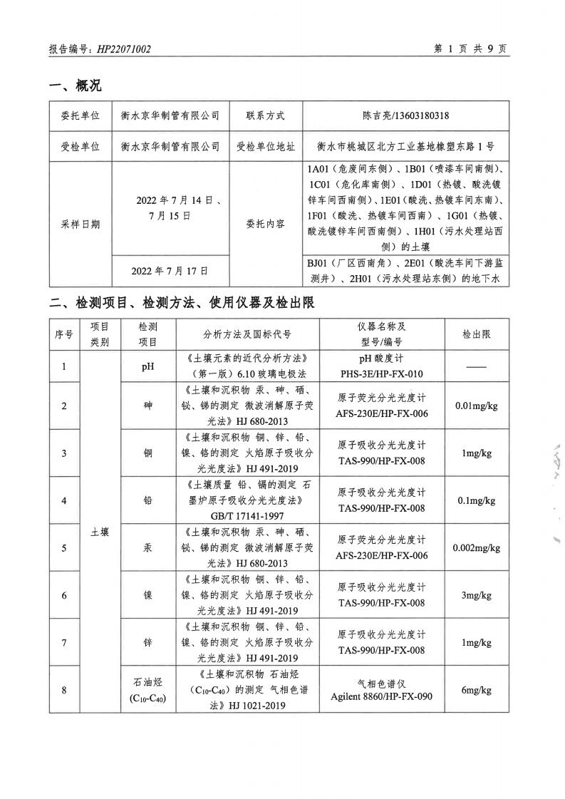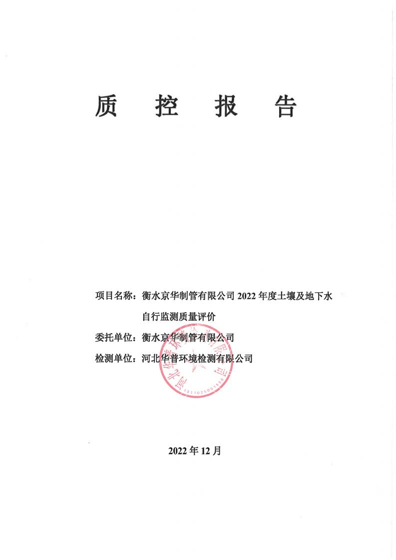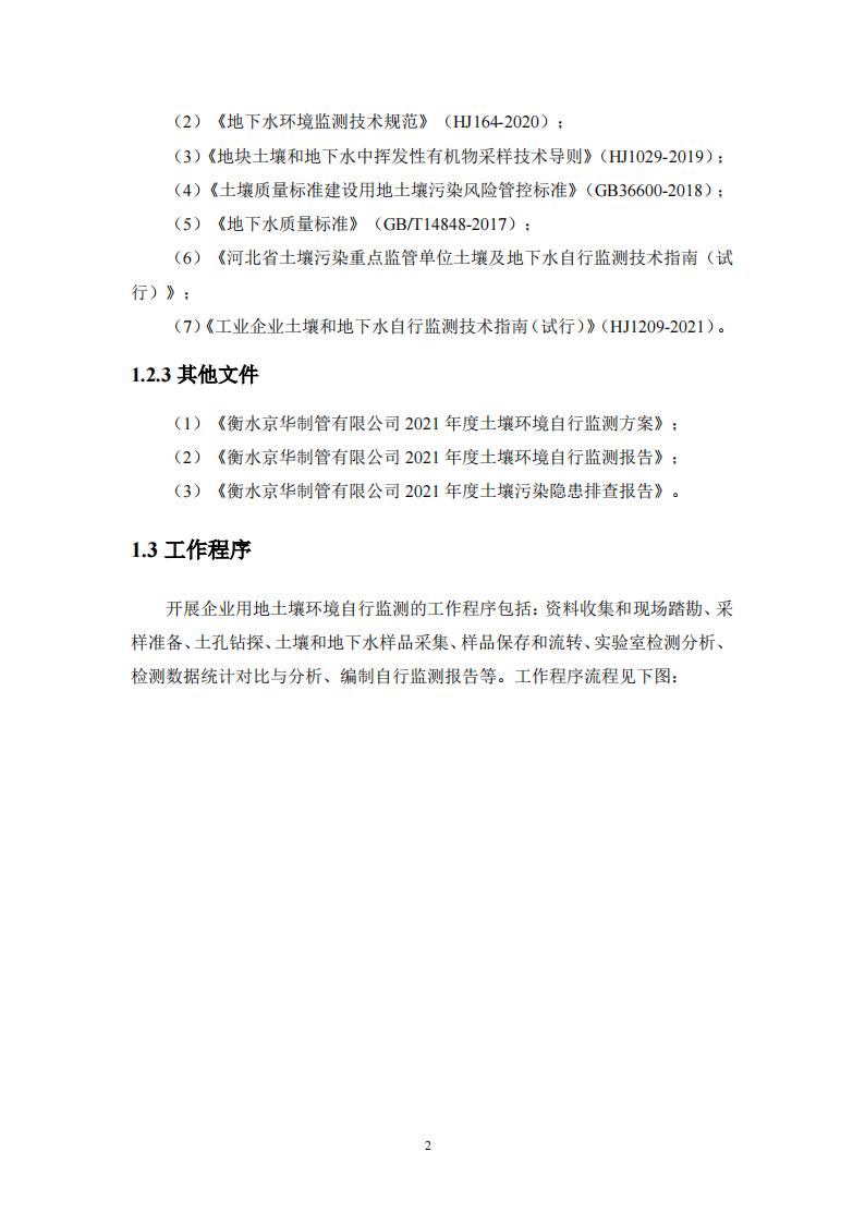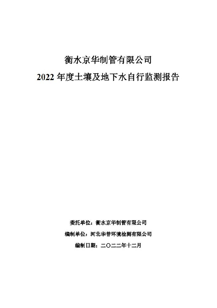 衡水京華制管有限公司 2022 年度土壤及地下水自行監(jiān)測(cè)報(bào)告