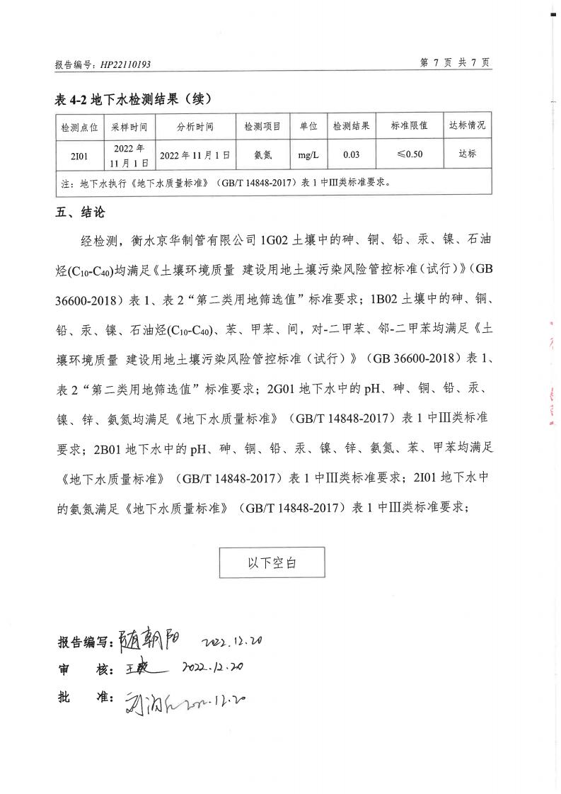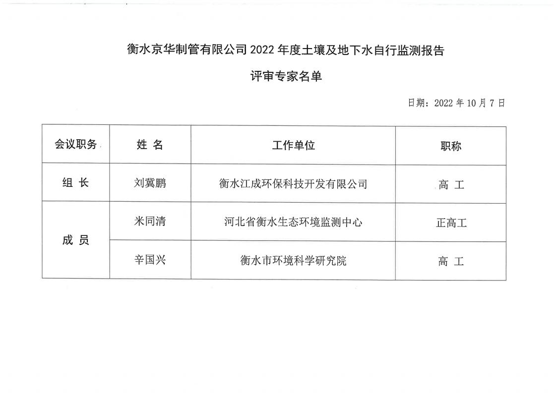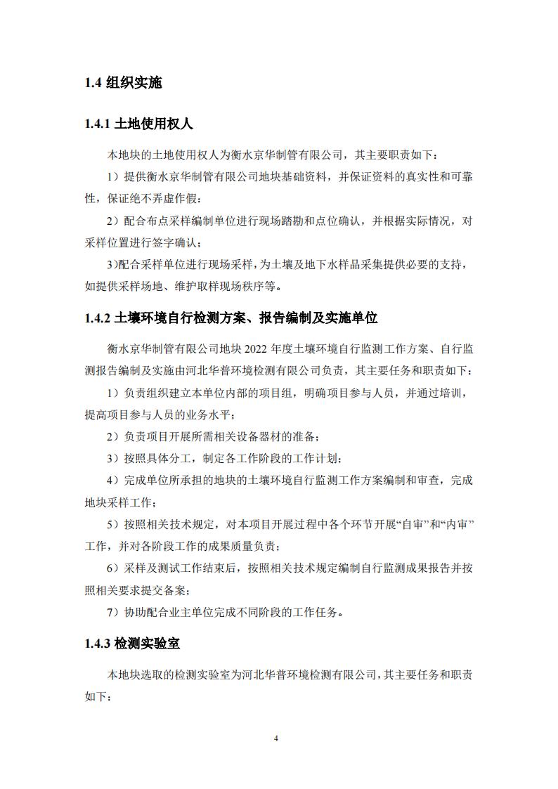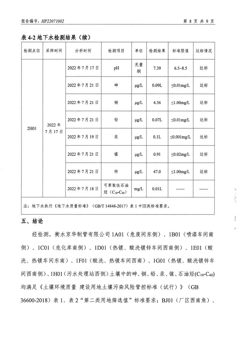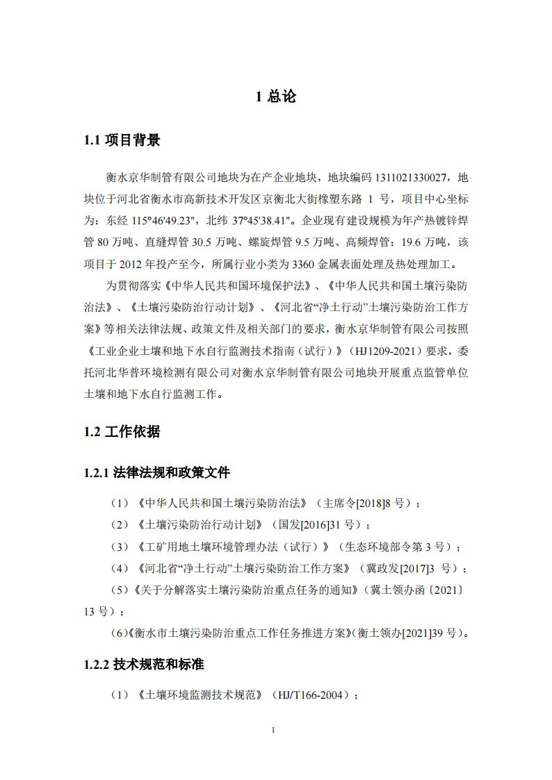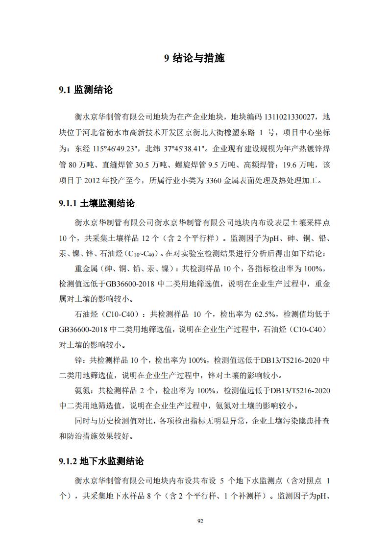 衡水京華制管有限公司 2022 年度土壤及地下水自行監(jiān)測(cè)報(bào)告