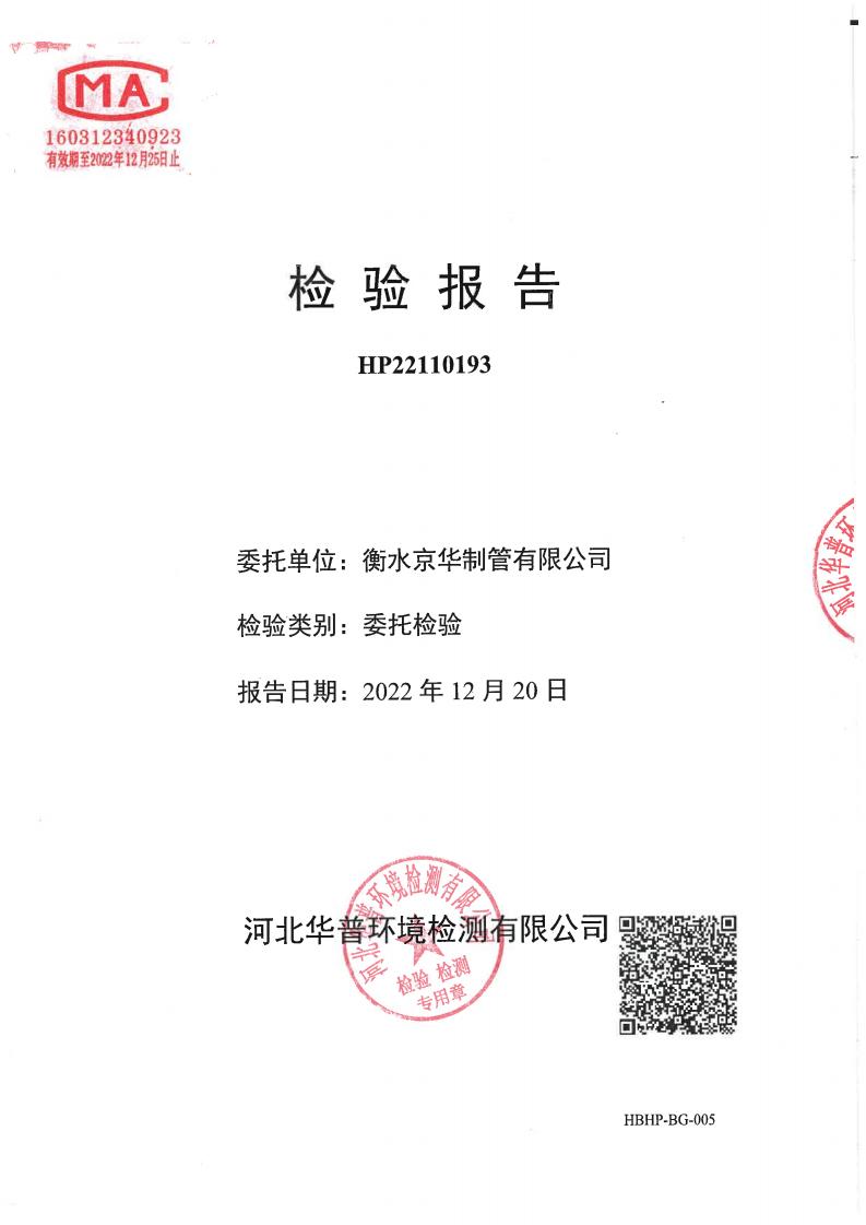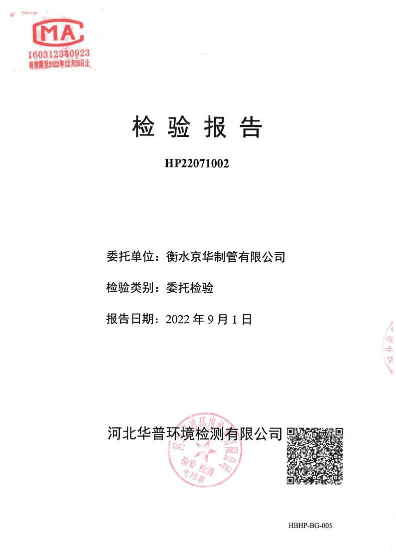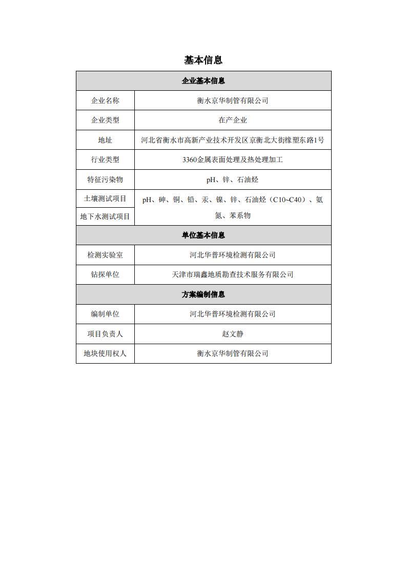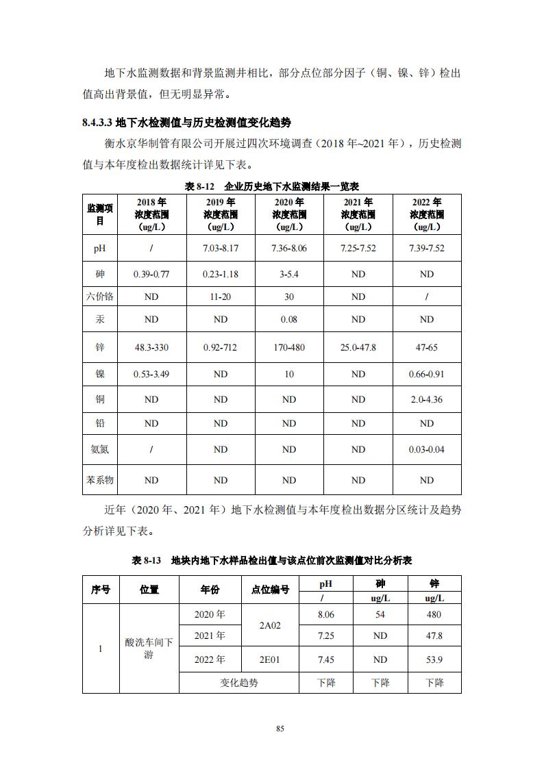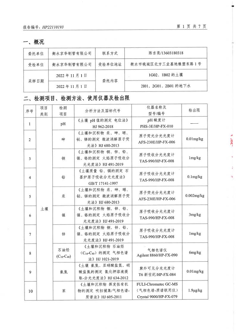 衡水京華制管有限公司 2022 年度土壤及地下水自行監(jiān)測(cè)報(bào)告