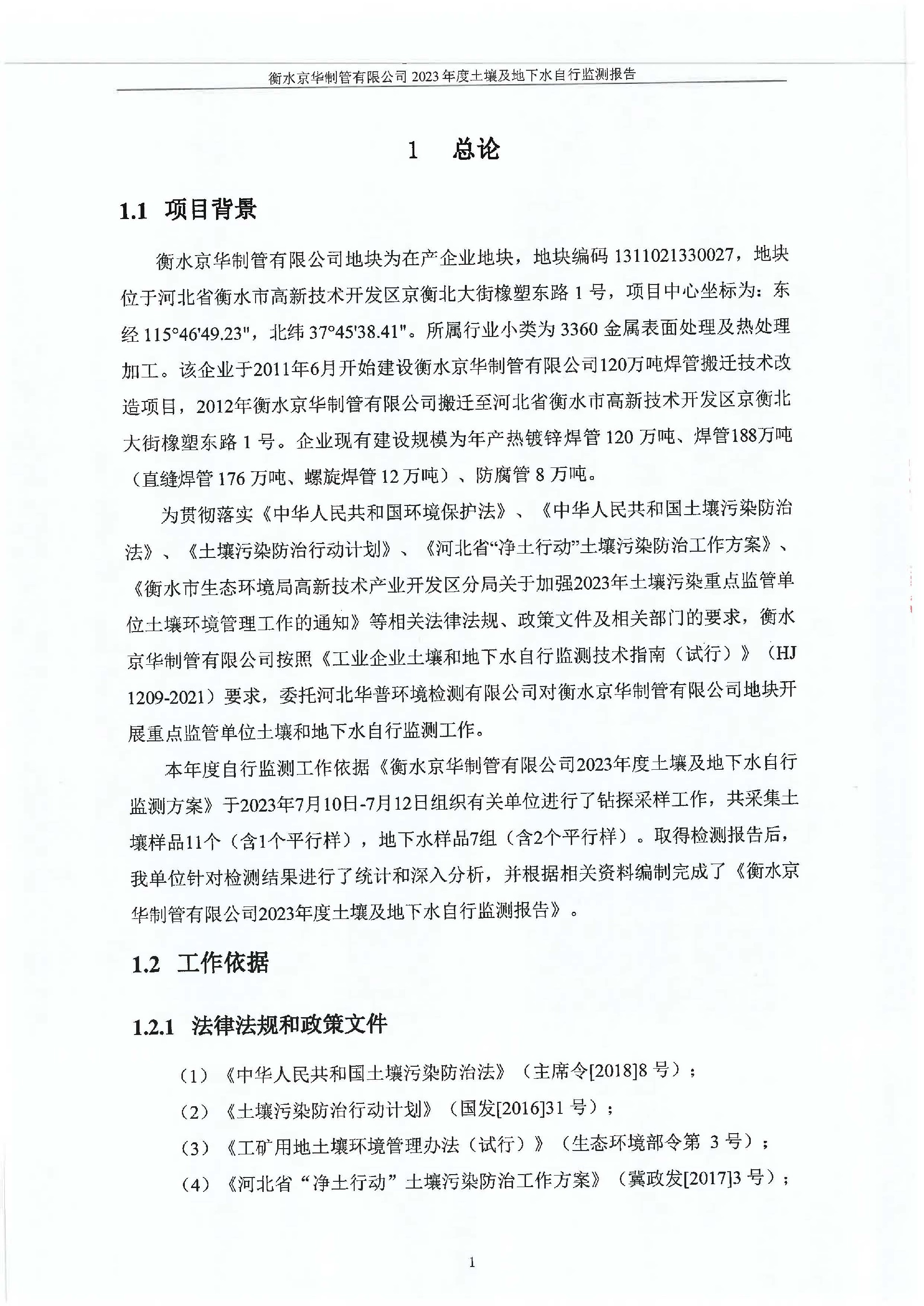 2023年度土壤及地下水自行監(jiān)測報告