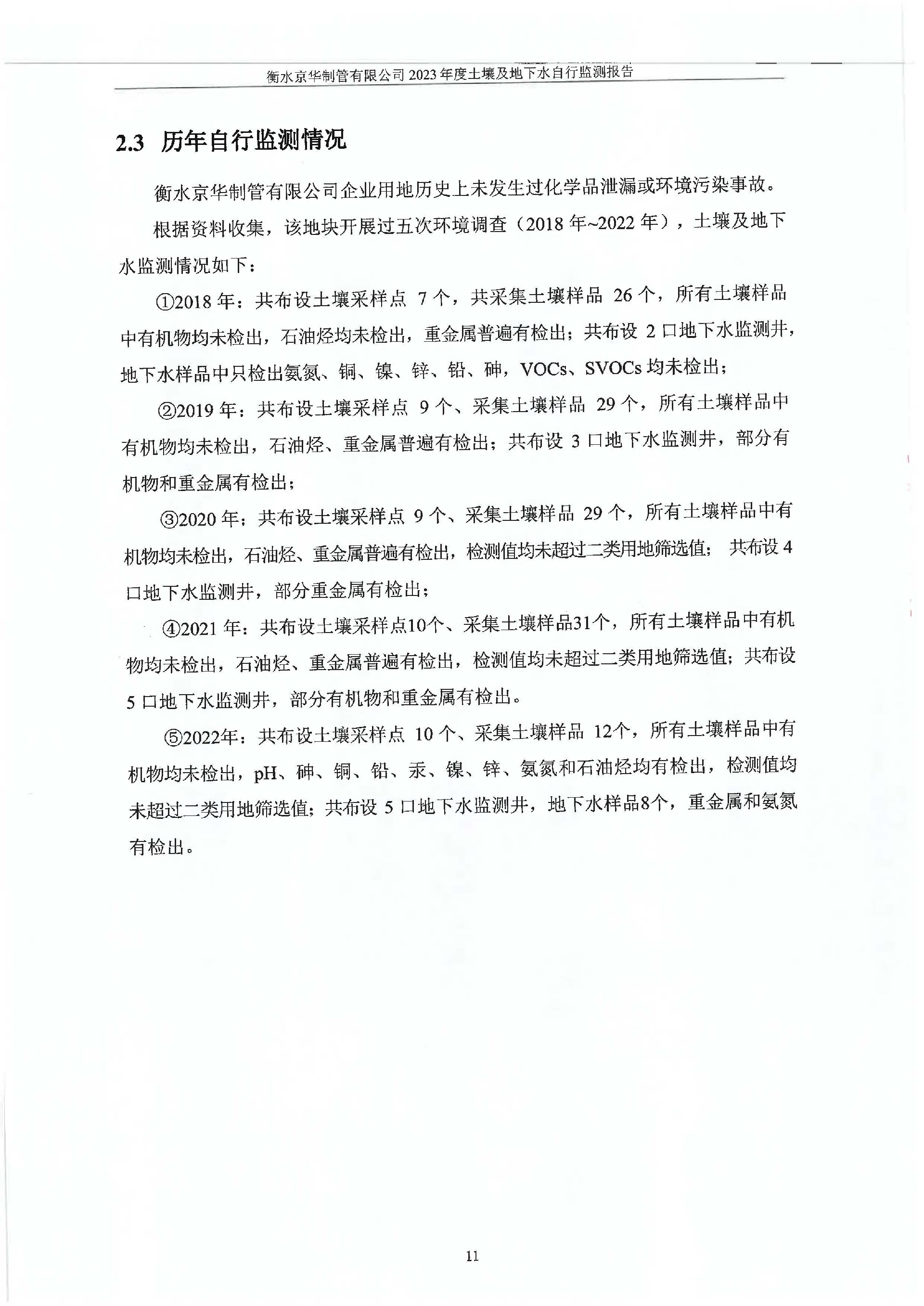 2023年度土壤及地下水自行監(jiān)測報告